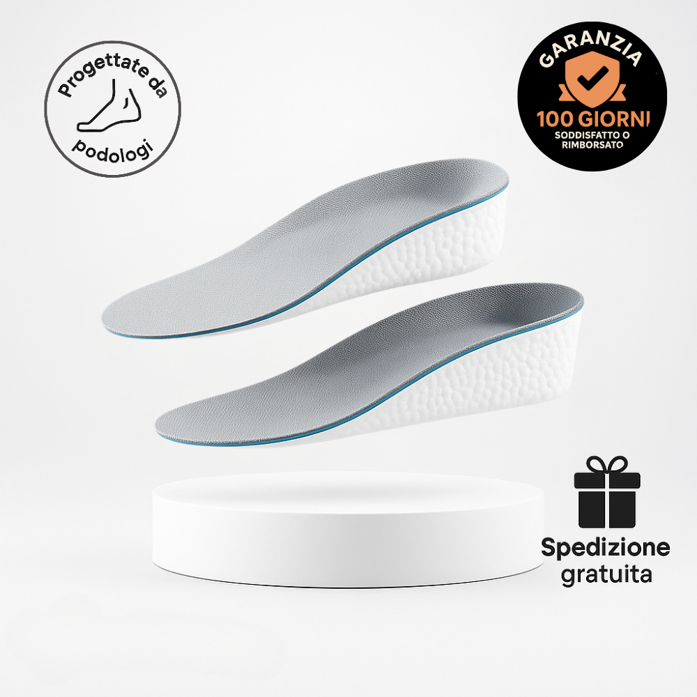 Stabilizzano il tallone infiammato ma, grazie al design 3/4, lasciano l'avampiede libero di muoversi.