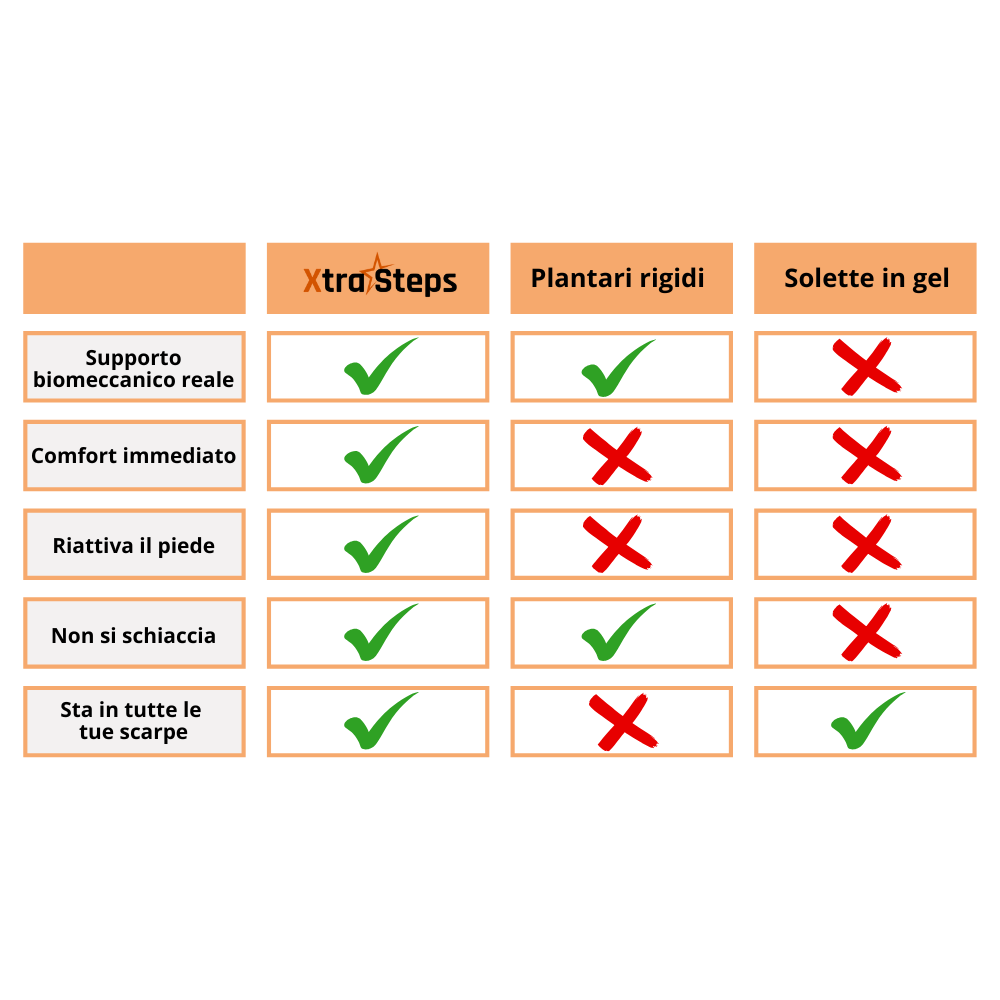 I plantari XtraSteps usano un approccio diverso: offrono un supporto biomeccanico attivo.